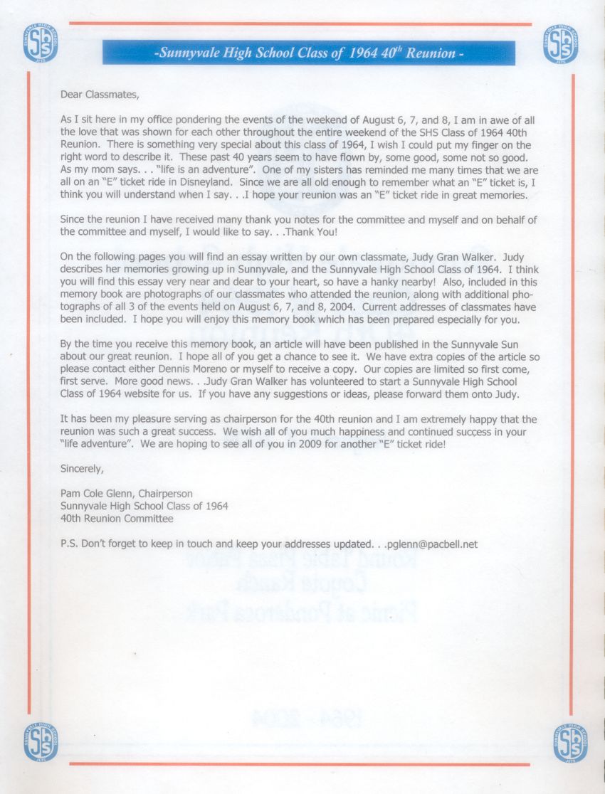 Big thanks to everyone who helped with making our 45th reunion enjoyable and a great success!
